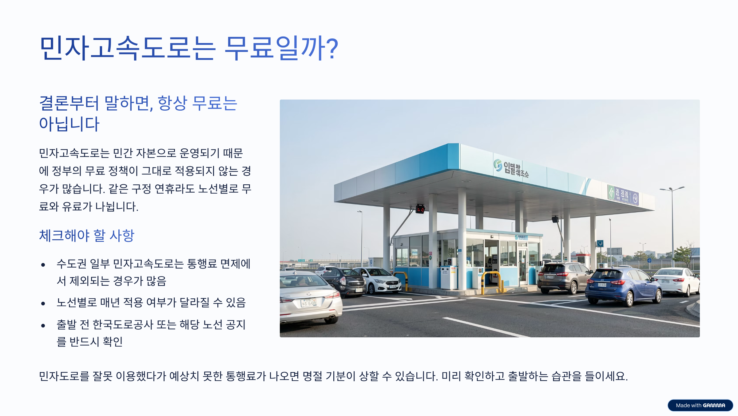 여기서 가장 많이 헷갈리는 게 바로 민자고속도로예요. 결론부터 말하면 항상 무료는 아닙니다. 민자고속도로는 민간 자본으로 운영되다 보니, 정부 정책이 그대로 적용되지 않는 경우가 있어요. 그래서 같은 구정 연휴라도 어떤 도로는 무료, 어떤 도로는 유료가 됩니다.
