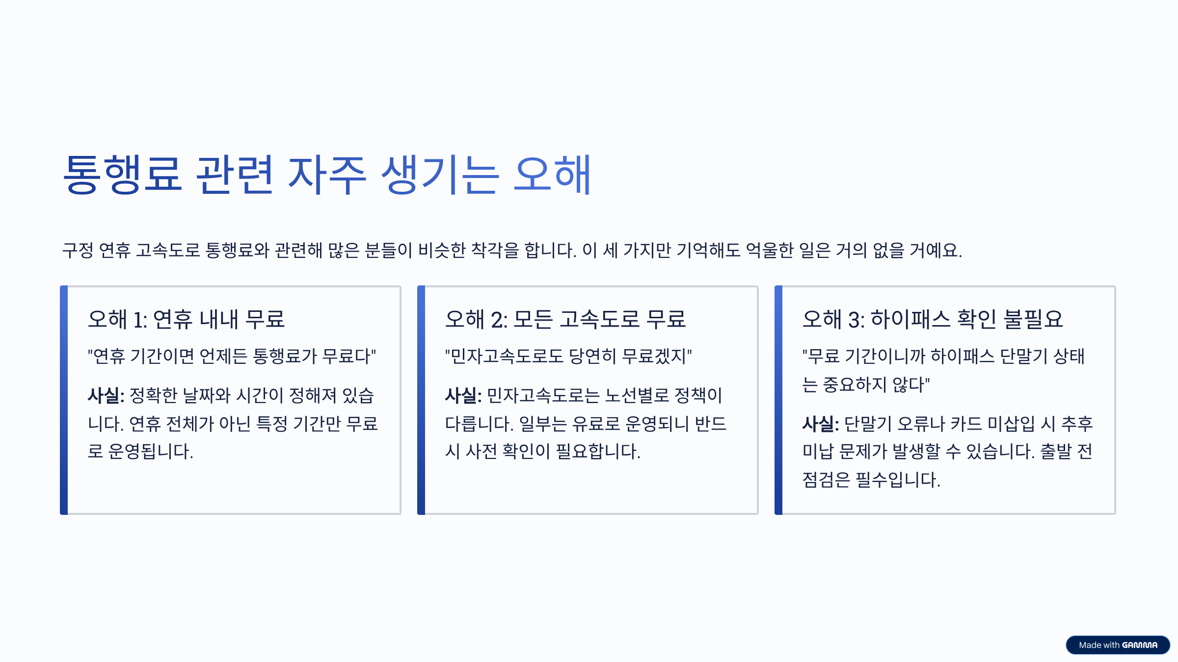 - 연휴 기간이면 언제든 통행료가 무료라고 생각하는 경우