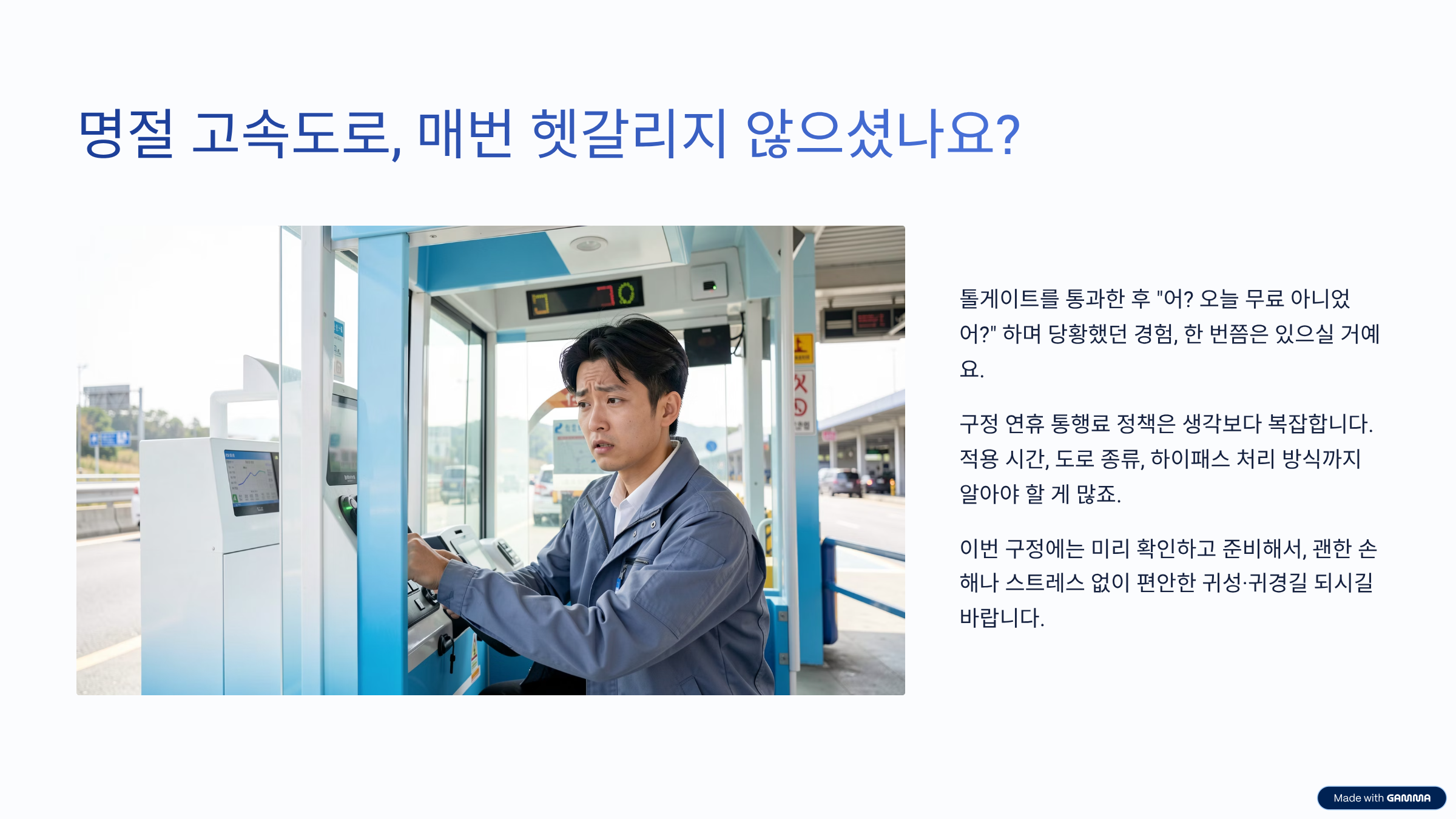 구정 연휴 고속도로 통행료와 관련해서 생각보다 많은 분들이 비슷한 착각을 하더라구요. 실제로 주변에서도 이런 얘기 정말 자주 듣습니다.