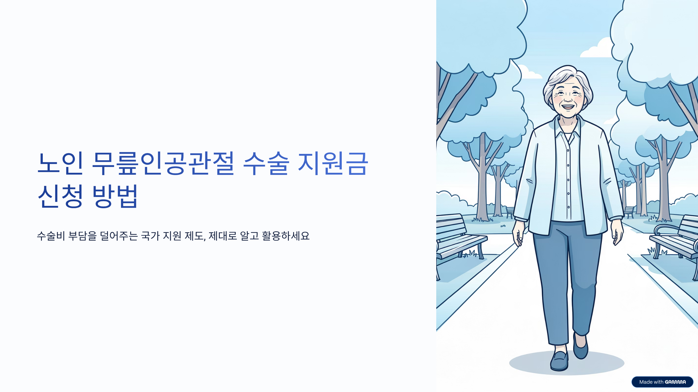 안녕하세요. 요즘 부모님 무릎 때문에 병원 다니느라 마음이 좀 무거운 날들이에요. 며칠 전엔 정형외과에서 “이제는 인공관절 수술을 고려해 보셔야겠다”는 말을 듣고 순간 머리가 하얘지더라구요. 수술 자체도 걱정이지만, 솔직히 비용 이야기를 듣는 순간 숨이 턱 막혔습니다. 그러다 우연히 노인 무릎인공관절 수술 지원금 제도를 알게 됐고, ‘이건 꼭 정리해서 알려야겠다’는 생각이 들었어요. 저처럼 막막한 분들께 조금이라도 도움이 되길 바라며, 실제 신청 기준부터 절차까지 차근차근 풀어보려 합니다.