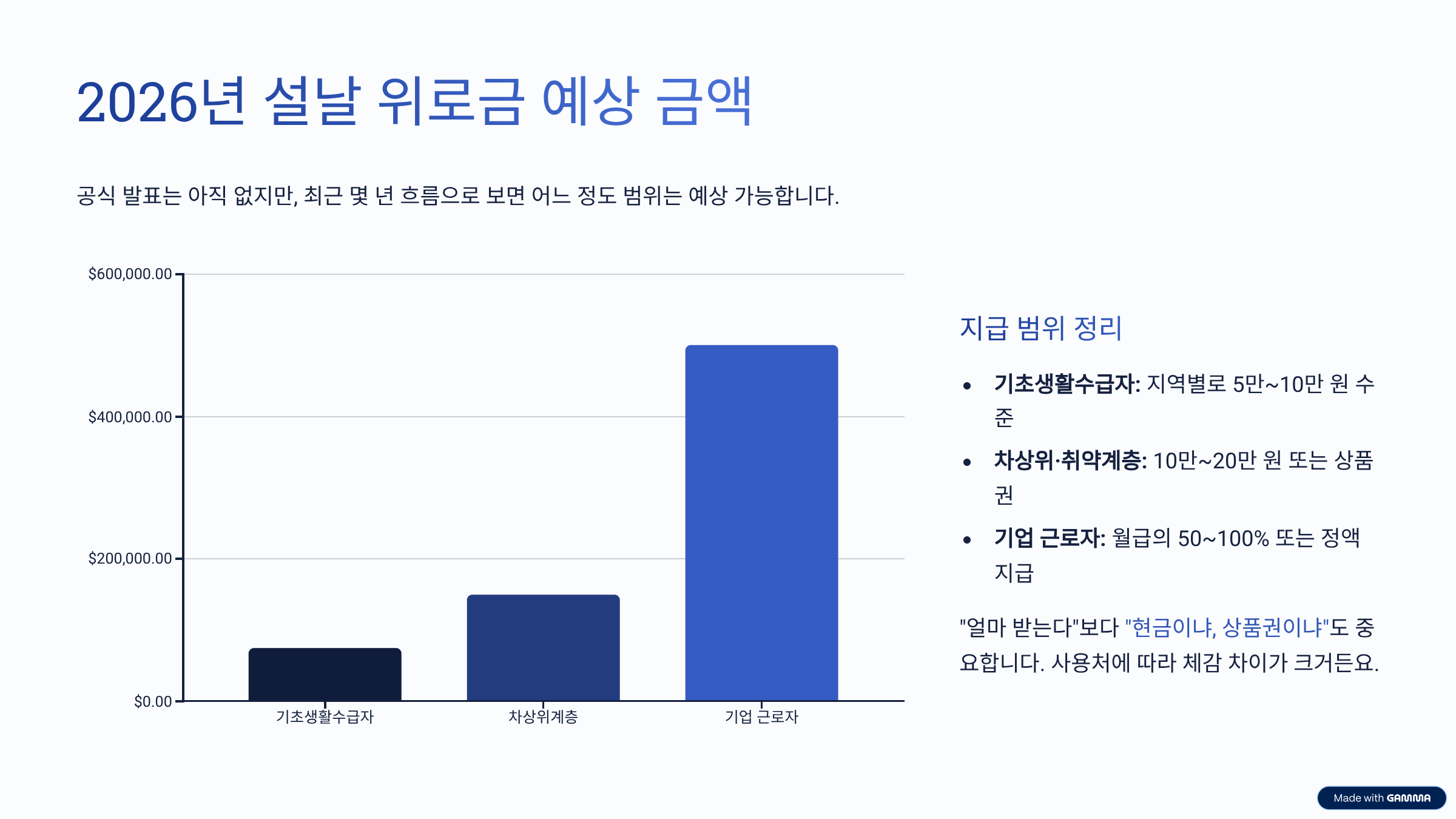 개인적으로 느끼기엔, 위로금이라는 단어 자체가 참 묘해요. 많진 않아도 괜히 마음이 놓이고, 명절 준비할 때 숨통이 조금 트이는 느낌? 그래서 금액보다도 “나도 대상이구나”라는 심리적인 안정감이 꽤 크더라구요. 2026년 설날 위로금 역시 이런 성격을 그대로 이어갈 가능성이 큽니다.