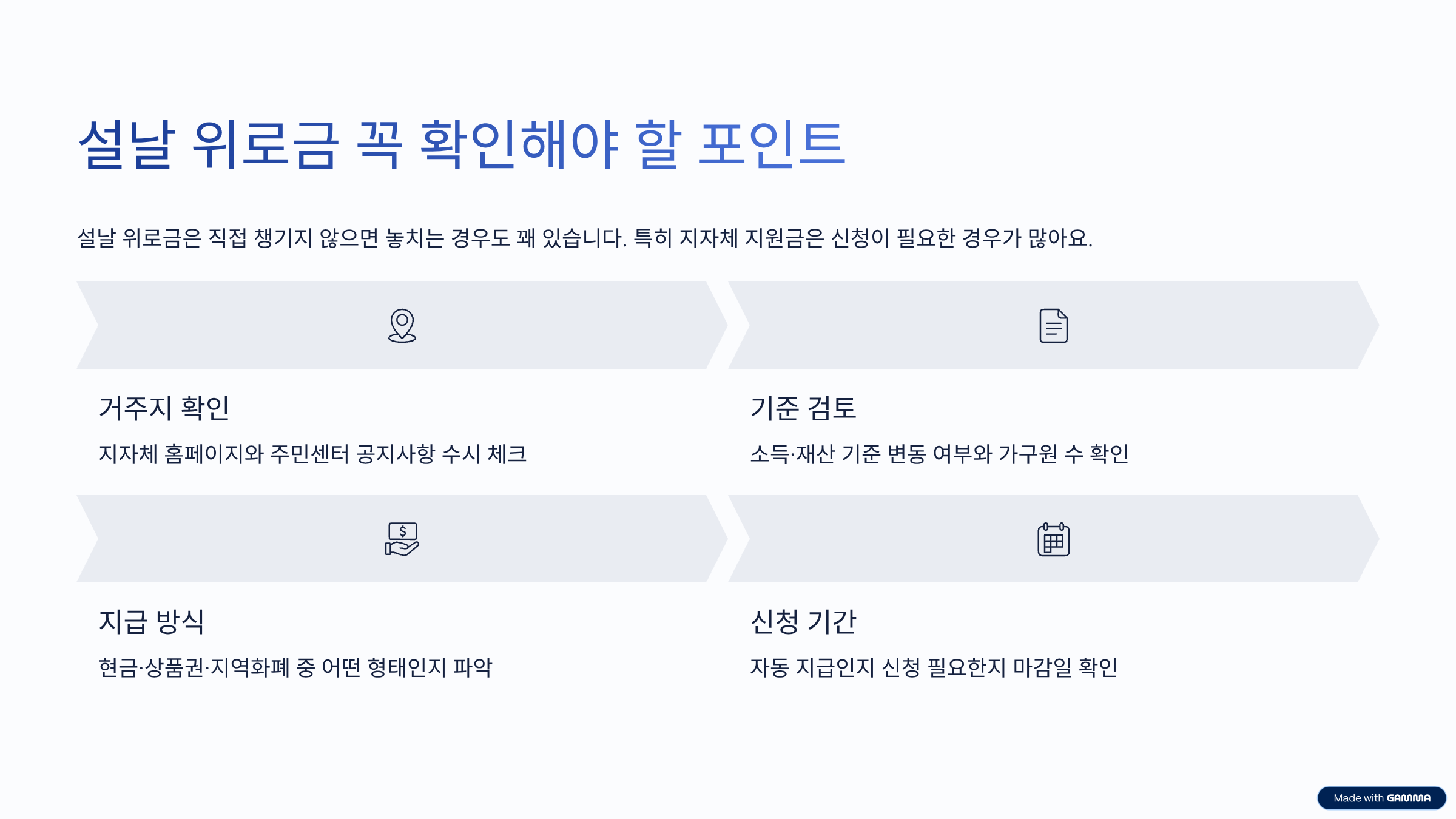 설날 위로금은 가만히 있으면 알아서 들어오는 경우도 있지만, 솔직히 말해서 직접 챙기지 않으면 놓치는 경우도 꽤 있어요. 특히 지자체 지원금은 신청이 필요한 경우가 많거든요.