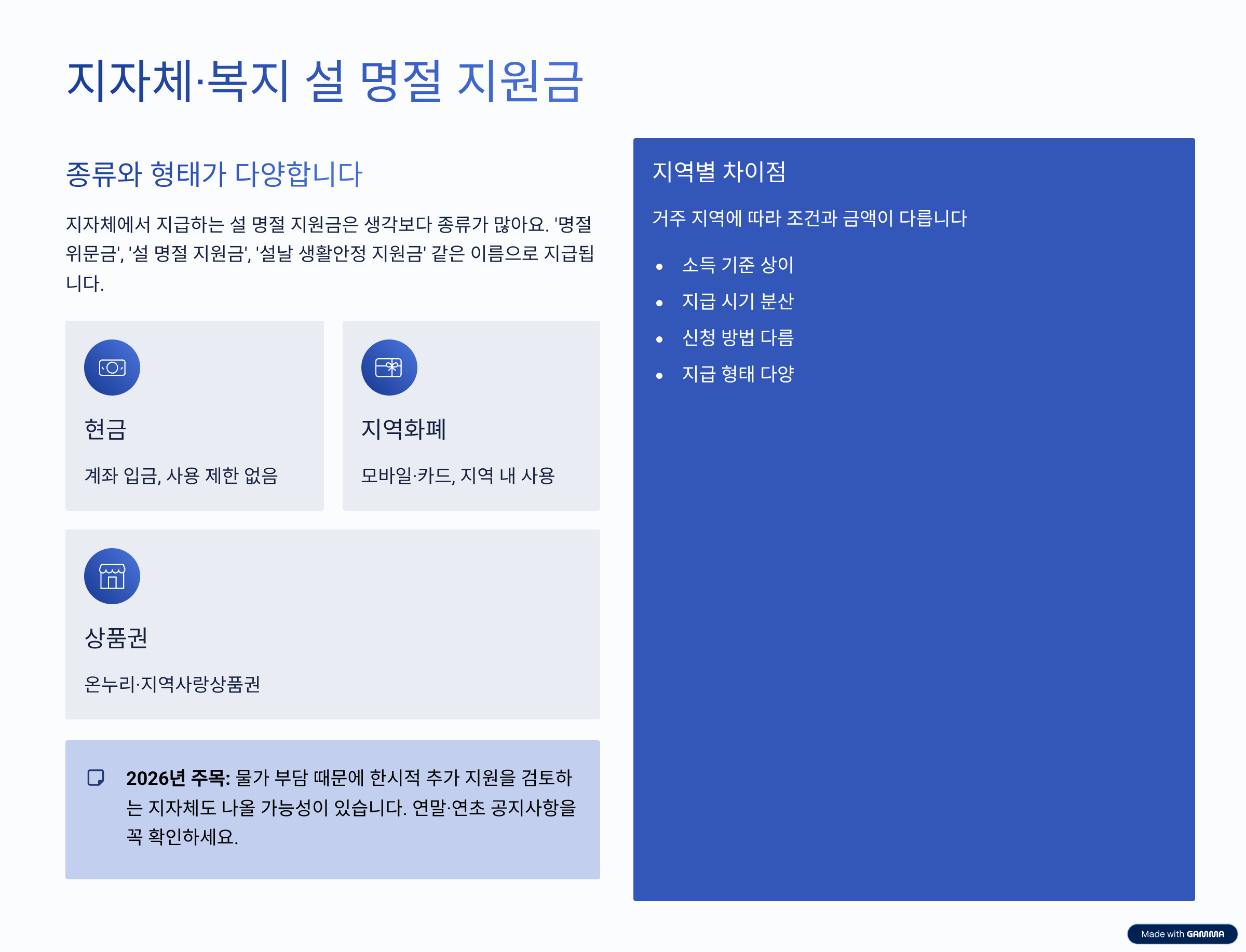 솔직히 말하면, “얼마 받는다”보다 “현금이냐, 상품권이냐”도 꽤 중요해요. 장보기에 바로 쓸 수 있느냐, 아니면 사용처가 제한되느냐에서 체감 차이가 크거든요.