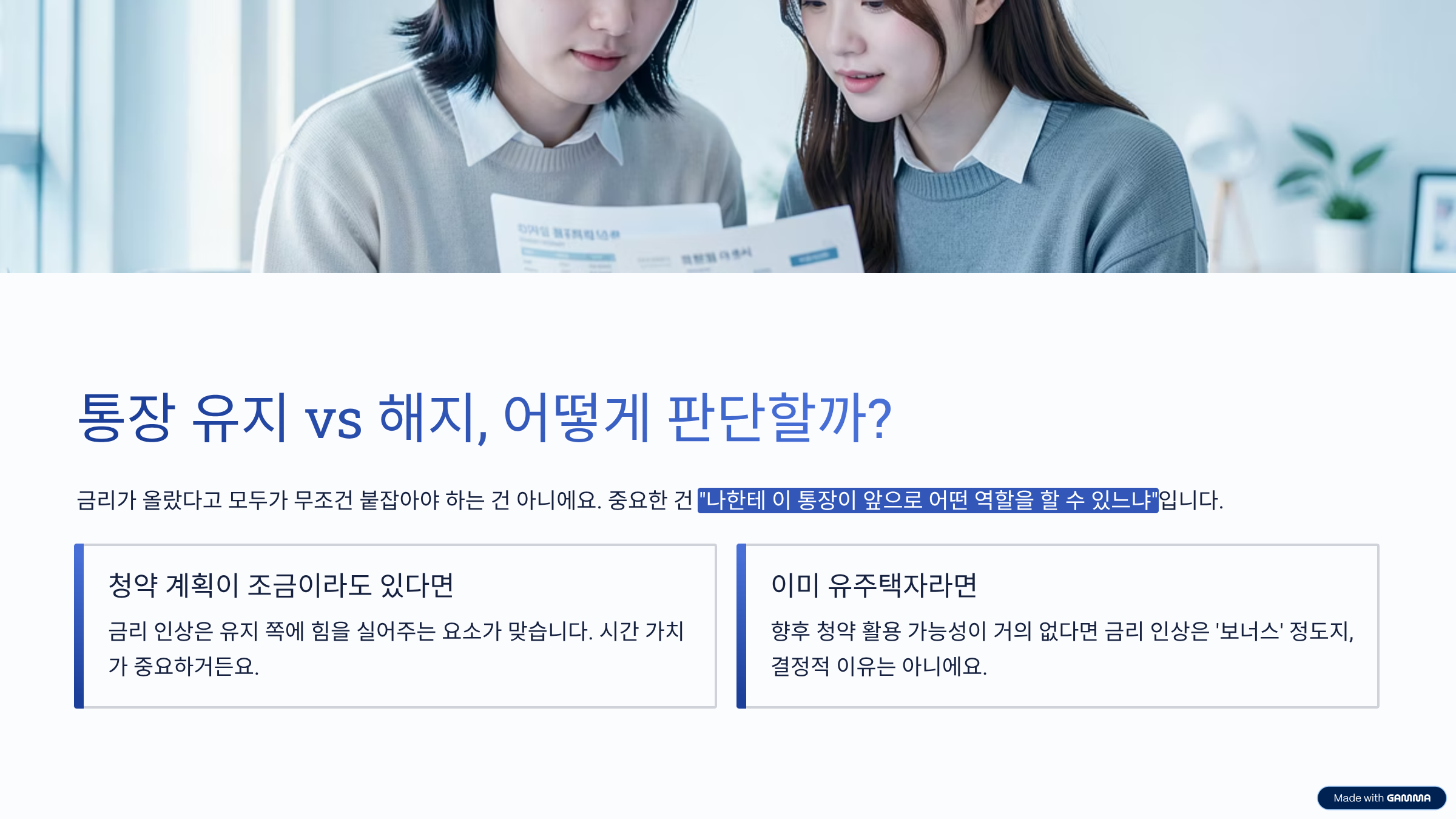 반대로 이미 유주택자이고, 향후 청약 활용 가능성도 거의 없다면 이야기는 달라져요. 이 경우 금리 인상은 ‘보너스’ 정도지, 통장을 계속 들고 가야 할 결정적 이유는 되지 않거든요. 결국 핵심은 금리보다 청약 자격과 시간 가치입니다.