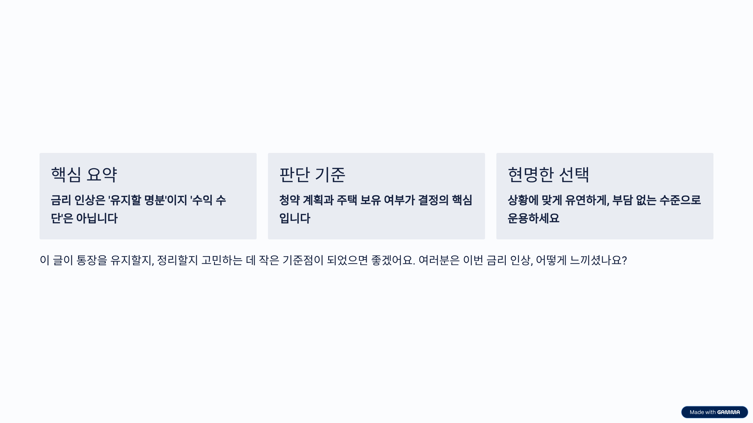 금리 인상은 방향 신호일 뿐, 답은 각자의 상황 안에 있다는 점… 이건 꼭 기억해 두면 좋아요.