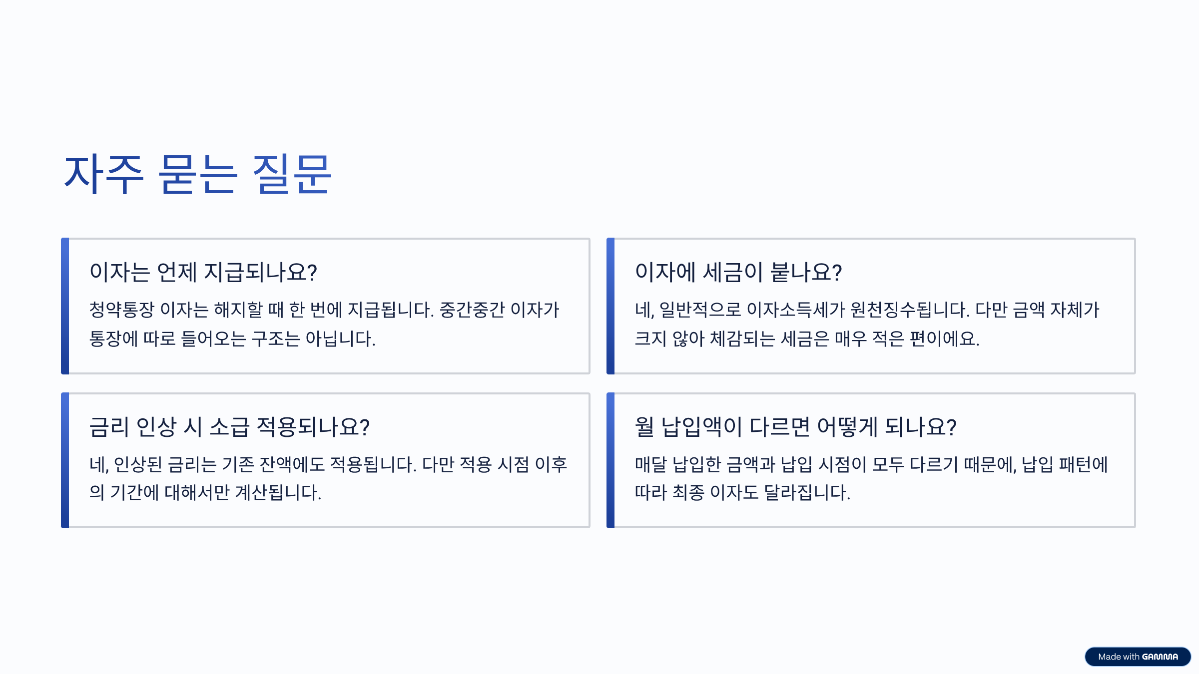 - 해지 시점 기준으로만 이자 확정