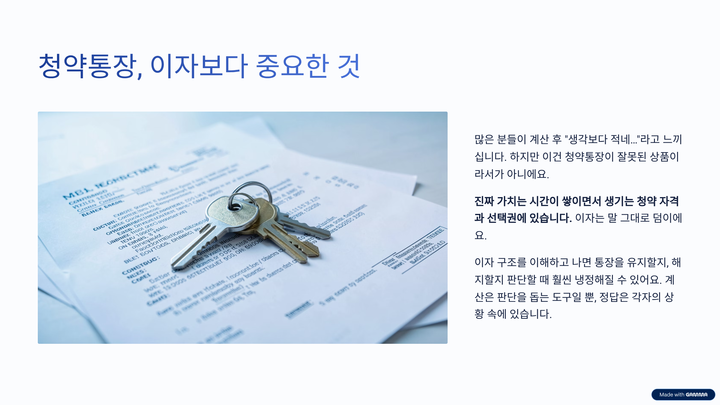 청약통장 이자 계산을 직접 해보면 많은 분들이 비슷한 생각을 하게 됩니다. “생각보다 적네…”라는 느낌이요. 하지만 이건 청약통장이 잘못된 상품이라서가 아니라, 애초에 수익을 목적으로 만든 통장이 아니기 때문이에요. 이자는 말 그대로 덤이고, 진짜 가치는 시간이 쌓이면서 생기는 청약 자격과 선택권에 있습니다.